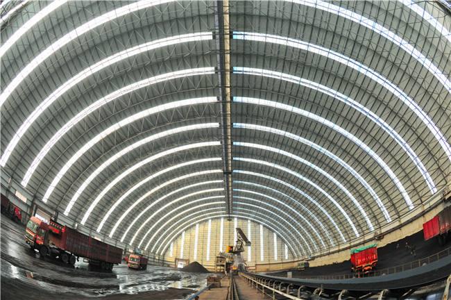 堆场料场封闭式主体结构为新型的钢砀山网架结构,维修结构为砀山钢结构砀山不锈钢板和纤维增强塑料灯具,其外形以砀山网架式和平板为主,连接柱砀山施工自由,设置喷雾自动喷水系统,从而可以实现棚内所有物料的覆盖,减少物料在运输过程中的损耗,起到防尘的作用,减少工厂关闭后的二氧化硫排放量,50mg/m3颗粒排放量小于10mg/m3,非常适合低能耗。低闭库自动感应反应对库存轮胎进行清洁,确保轮胎不受道路污染;封闭的储存区可从源头控制粉尘污染,控制无序排放。
